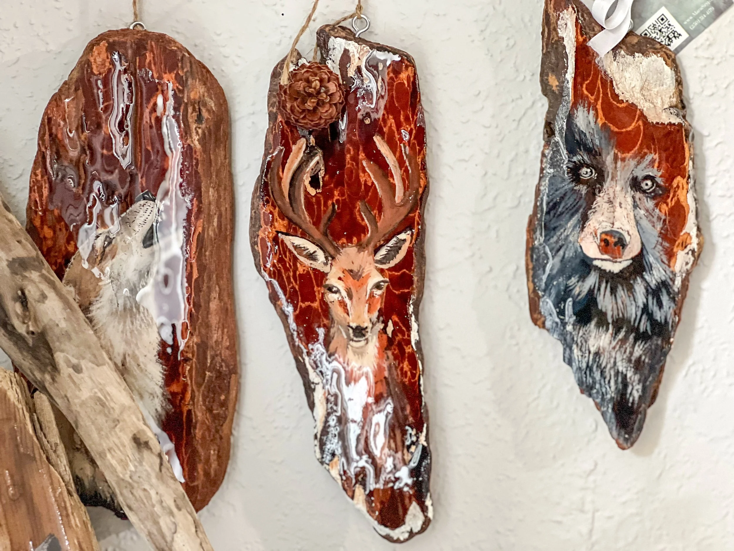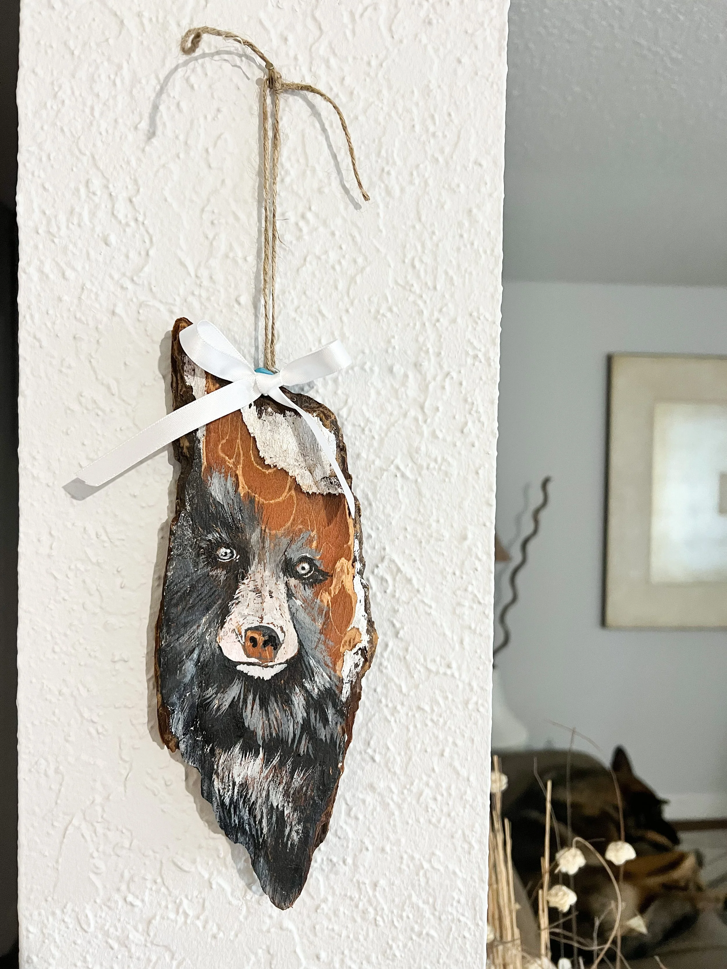 This beautiful hand-painted artwork is created on a piece of driftwood that I collected locally during one of our family hikes while Koda enjoyed the ocean's tickles on his paws. Sometimes pieces just talk to me, this is one of them!
