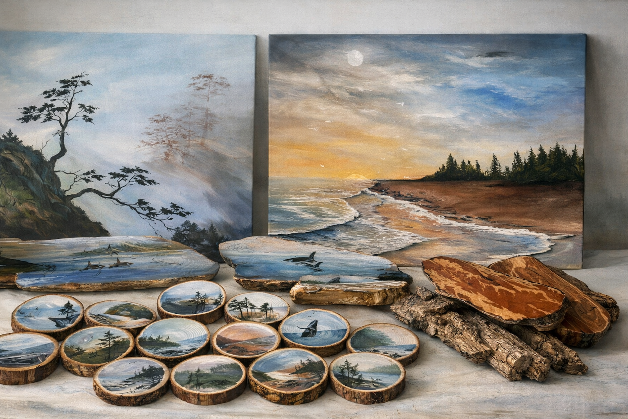 Each piece is created by hand in my studio in Victoria, British Columbia, inspired by the landscapes, coastlines, and quiet atmospheric moments of the West Coast.